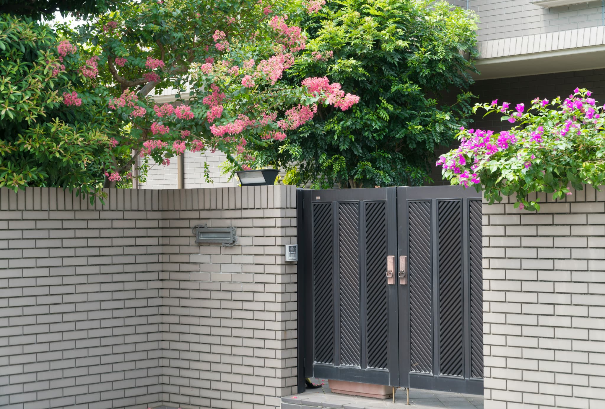 ただし、完全に囲んでしまうと、一度侵入されてしまった場合に外部から気づかれにくいという欠点もあります。そのため、防犯カメラやインターホンカメラを設置し、敷地内の状況を確認できる体制を整えることが重要です。また、門扉には施錠機能を持たせ、簡単には開けられないようにすることで、安全性をさらに高めることができます。